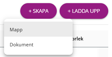 För att skapa en ny mapp klickar du på "+Skapa" och väljer "Mapp". Namnet måste vara unikt inom den mapp där mappen skapas.