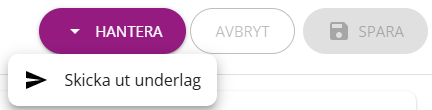 Inför ett möte behöver man ofta skicka ut underlag, exempelvis Dagordning, och detaljer om eventuella ärenden som ska behandlas på mötet. Via Hantera - Skicka ut underlag kan man enkelt välja vilka av deltagarna man vill skicka till, vilka av mötets bifogade dokument man vill skicka, sedan skriva ett kort meddelande som hamnar i mailet med de bifogade filerna till mötesdeltagarna.
