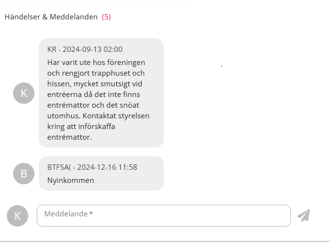 Under kommentarer så kan ni se statusuppdateringar av ärendet samt förvaltarnas egna kommentarer angående ärendet. Här har ni även möjlighet att skriva egna kommentarer som skickas till förvaltaren, exempelvis om ni vill inkomma med ytterligare uppgifter kring ärendet.