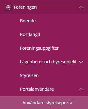 Observera att personen måste vara tillagd på portalen först innan denna finns att välja i listan. Ni kan lägga till personen antingen i vyn ovan under "Styrelse" när ni registrerar en styrelseförändring eller genom att lägga till styrelseanvändaren under Fölreningen —> Portalanvändare —> Användare styrelseportal: