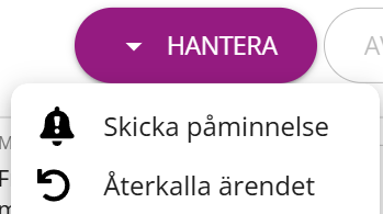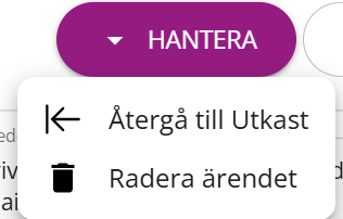 Återkallat - Ett ärende har blivit återkallat av en styrelseledamot i föreningen. Från status Återkallat kan man ändra status till Utkast via Hantera-menyn. I status Utkast kan du redigera ärendet och skicka ut det på nytt.