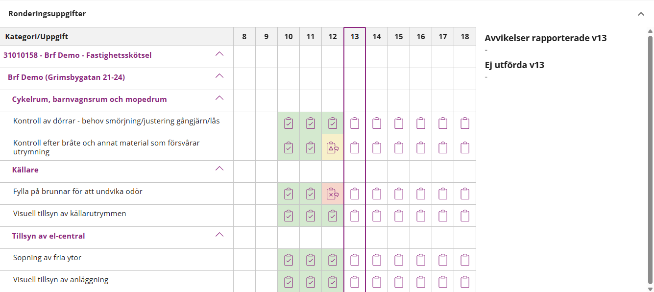I ronderingsschemat kan ni följa de checklistor och kontrollpunkter som er tekniska förvaltare utför under sina ronderingar.