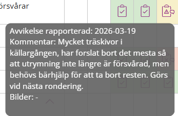 - 🟡 Gul färg = Avvikelse har rapporterats