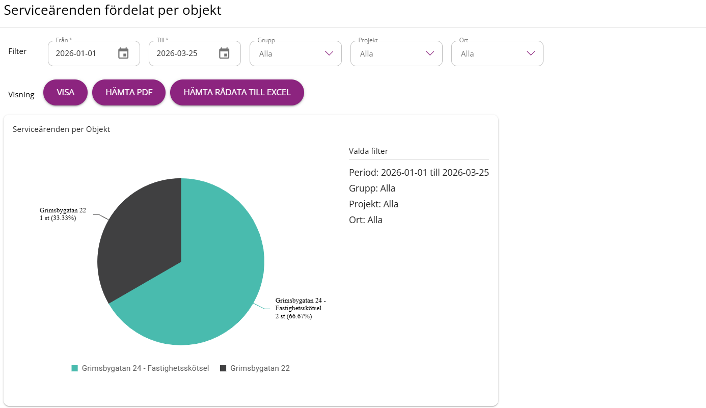 Rapporter - Serviceärenden fördelat per objekt