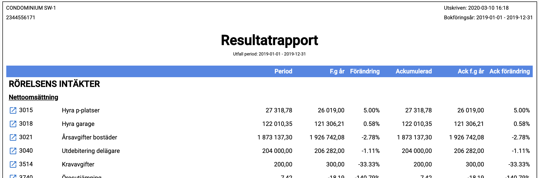 Resultatrapport ger dig möjlighet att ta ut en resultatrapport för en specifik period.