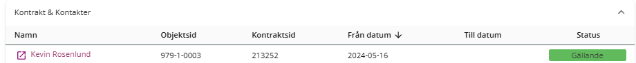 I listan med Kontrakt och kontakter så kan du se nuvarande och tidigare kontrakt på detta objektet.