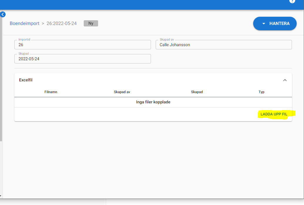 Klicka på Ladda upp fil och bläddra fram till den Excelfil du har förberett med information om de boende.