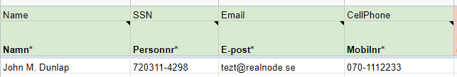 När mallen är nedladdad öppnar du den i Excel eller i Google kalkylark eller det verktyg som du vanligtvis använder för att redigera Excelfiler.OBS! Du får inte ändra rad 1 eller 2 i Excelfilen och inte heller redigera kolumner. Varken ordningen eller namnen på kolumnerna.