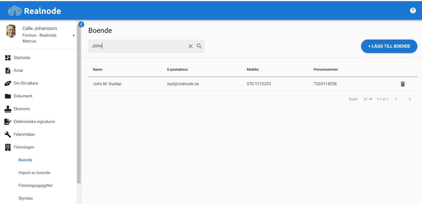 Nu kan du hitta de boende du importerat i listan över Boende.