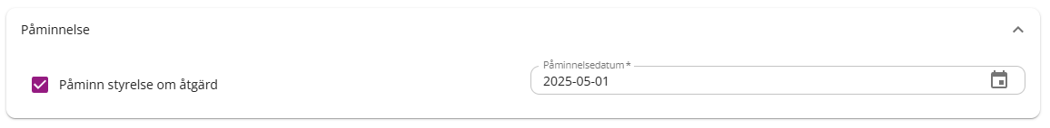 För att underlätta hanteringen av lånen kan styrelsen välja att skapa en påminnelse inför att lånet förfaller. PHM Digital kommer då skicka ett e-postmeddelande och skapa en uppgift till styrelsen för att påminna om att hantera lånet.